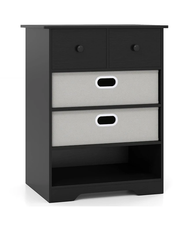 5 Drawer Storage Chest With Wood Top & Dark Fabric Pull Drawers