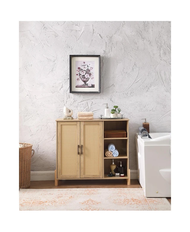 Streamdale Furniture Rattan Door Mid-Century Modern Storage Cabinet