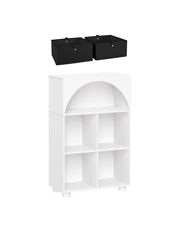 Basicwise Mdf Storage Box Shoe Bench with 2 Shelves, Foldable Baskets and a Gray Cushion, White