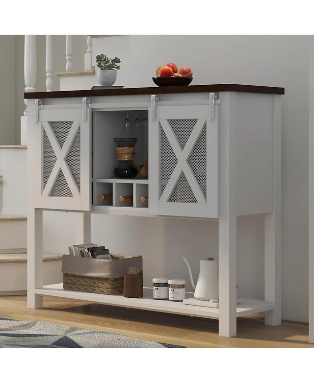 gaomon Set of 2 Rattan Sideboard Buffet Cabinet with Doors, Farmhouse Kitchen Storage Adjustable Shelf