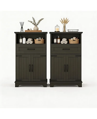 Rainsken Tall Slim Bathroom Storage Cabinet, Freestanding Wooden Tower Cabinet with 2 Doors, 1 Drawer and 4 Adjustable Shelves for Small Spaces
