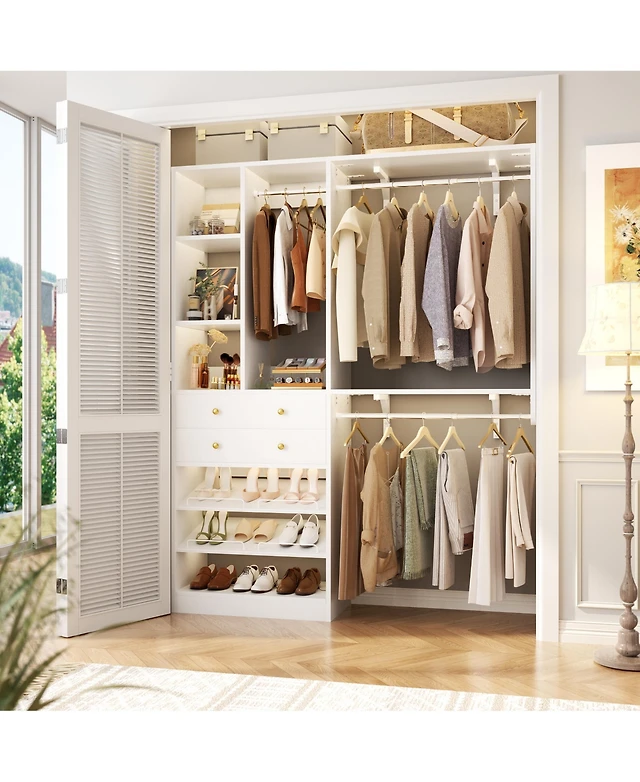 Aheaplus 74'' Closet Organizer with Wood Drawers
