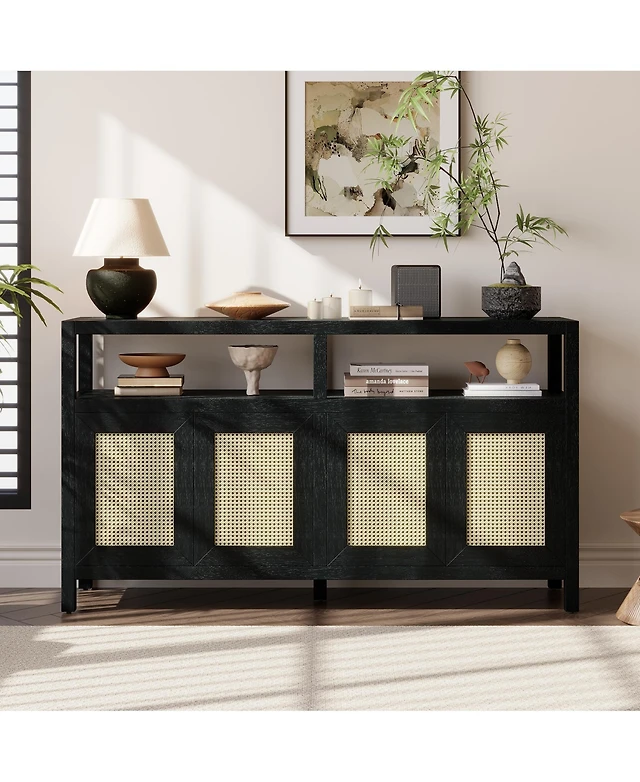 Streamdale Furniture Vintage Sideboard Buffet Cabinet with Hand-Carved Doors & 4 Doors