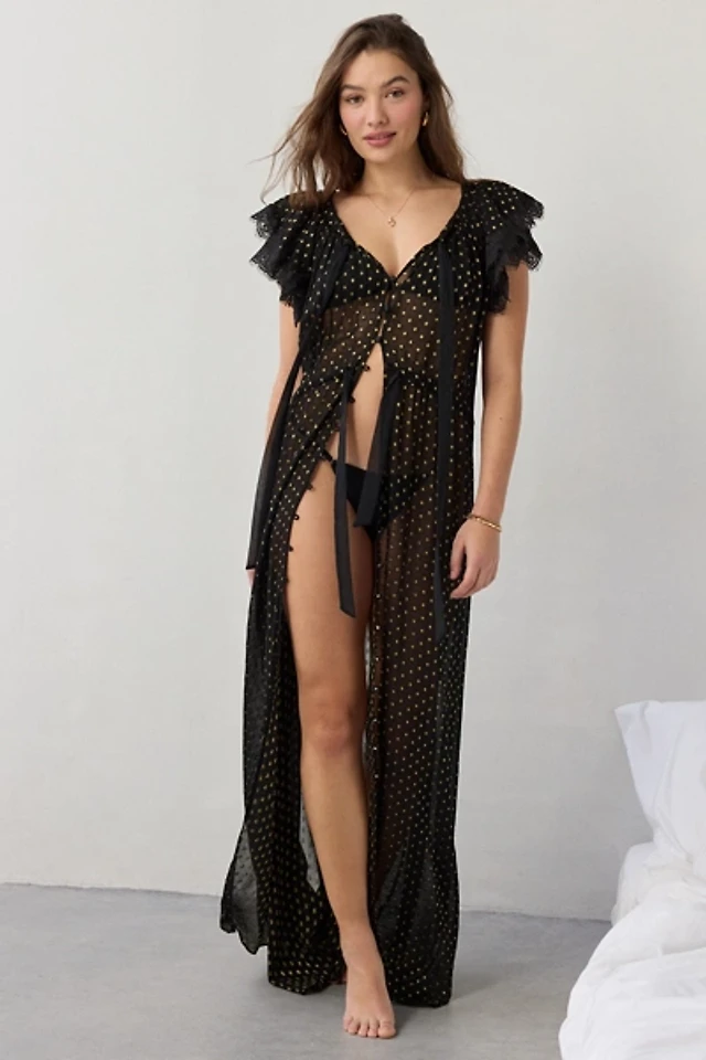 iCollection Jasmine Plus Soft Sheer Lace Robe with Self Tie Satin Sash