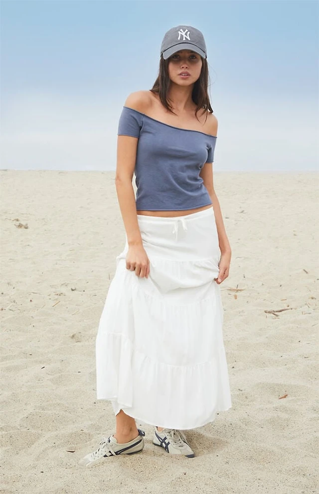 John Galt Dark Blue Bonnie Off-The-Shoulder Crop Top