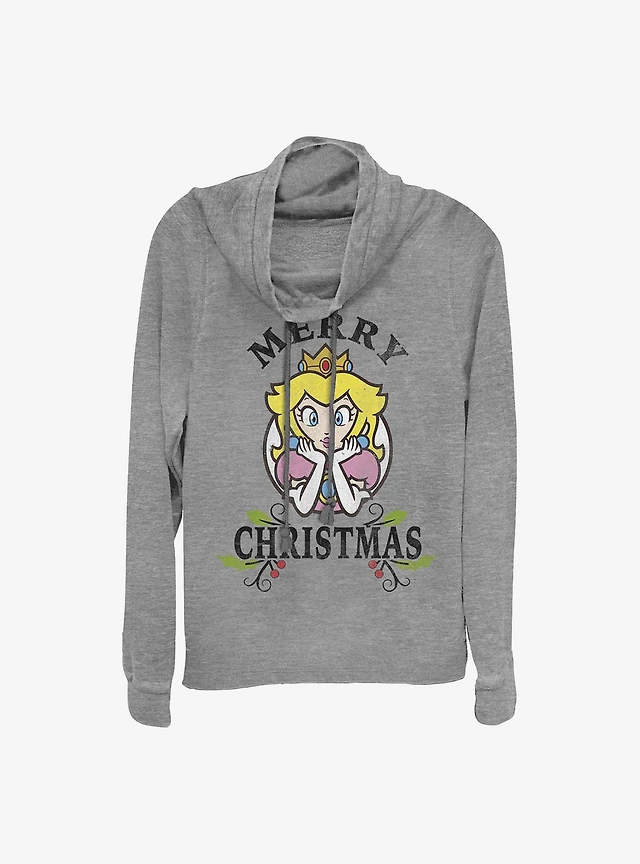 Nintendo Mario Princess Peach Holiday Cowlneck Long-Sleeve Girls Top