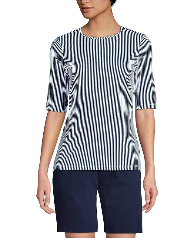 Lands' End Women's Elbow Sleeve Sunshade Upf 50 Quick Dry Crewneck Garden Tee