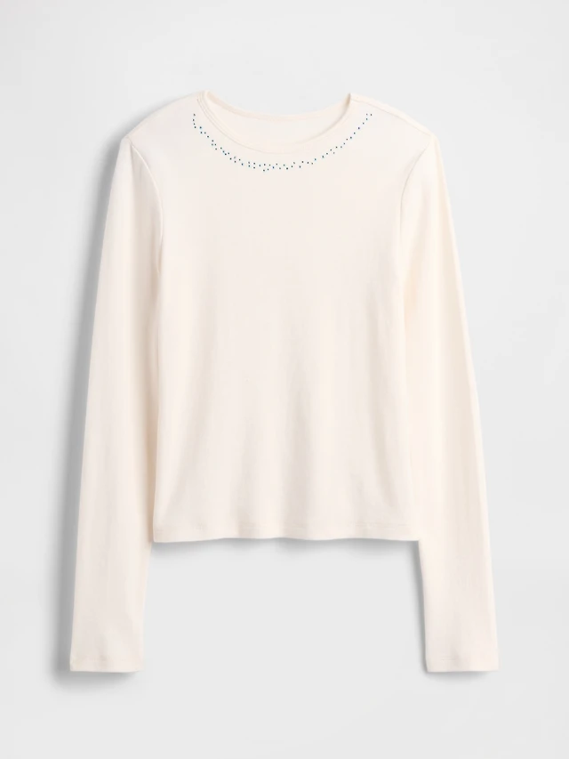 Modal Rib Lace-Trim Square-Neck T-Shirt