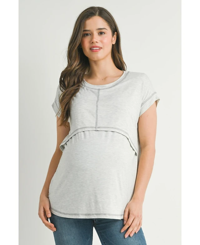 Hello Miz Maternity T-Shirt Relaxed Fit Short Sleeve Layered Nursing-Friendly