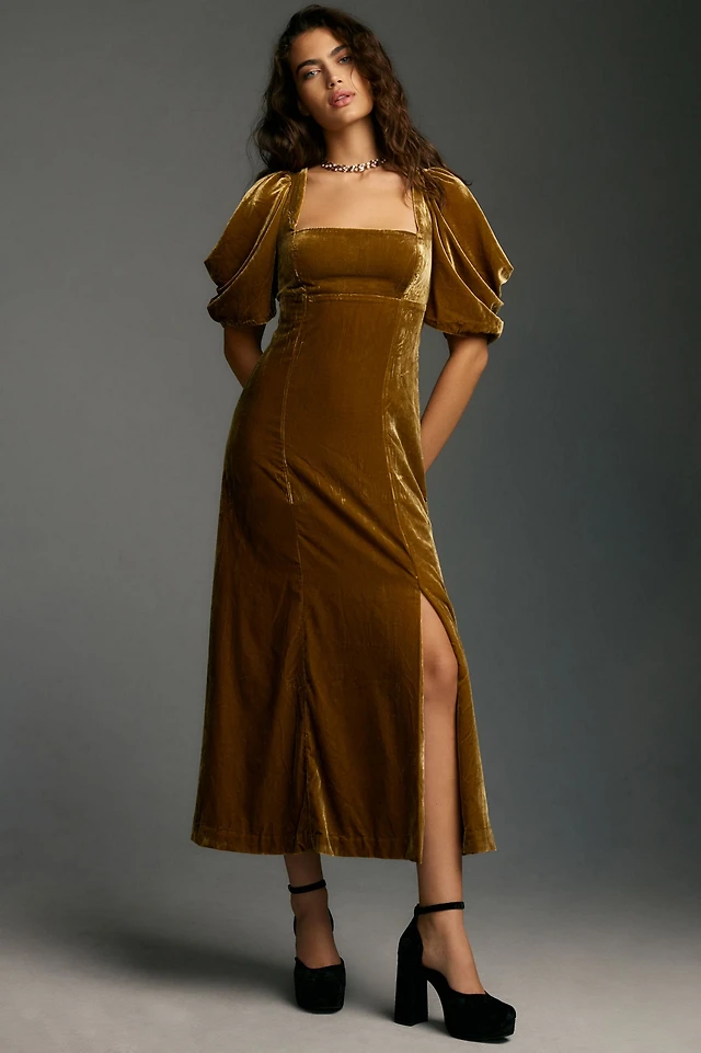 By Anthropologie Short-Sleeve Open-Back Maxi Dress
