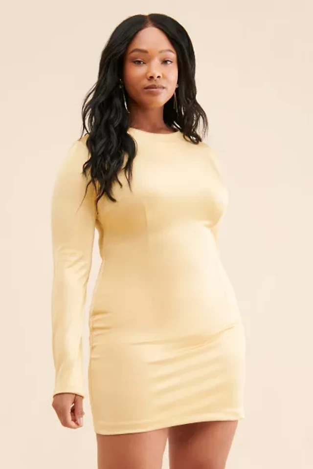 Miss Circle Women's Valentina Butter Yellow Boned Curve Edge Peplum Mini Dress