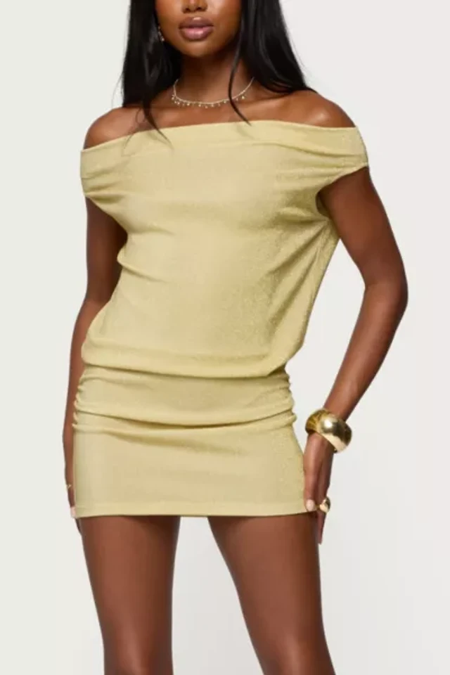 Edikted Eris Metallic Off Shoulder Mini Dress