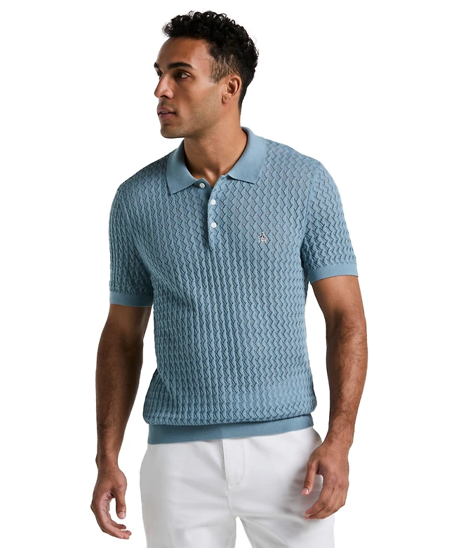 Original Penguin Men's Slim-Fit Textured Short Sleeve Sweater Polo Shirt