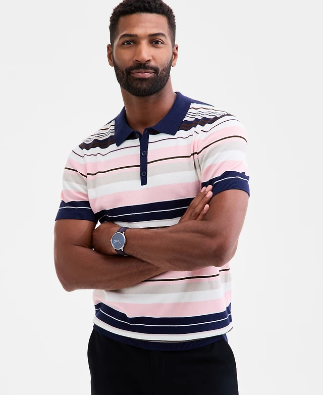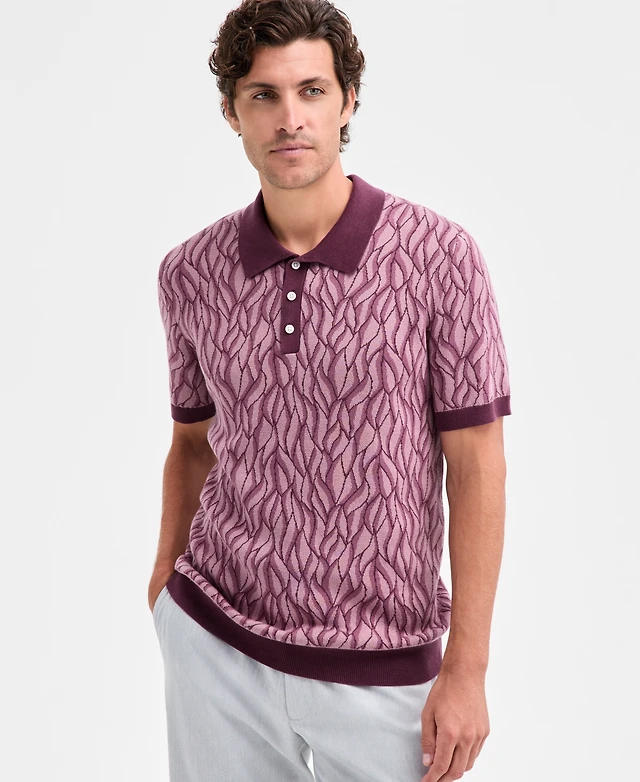Weatherproof Vintage Men's Short Sleeve Diamond-Pattern Polo Sweater
