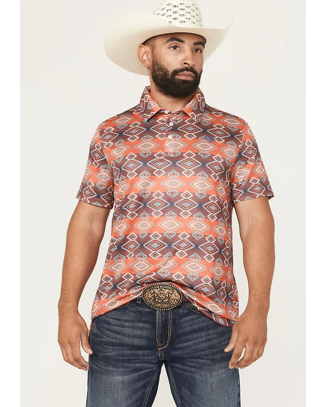Rock & Roll Denim Men's Southwestern Print Short Sleeve Button-Down Polo Shirt