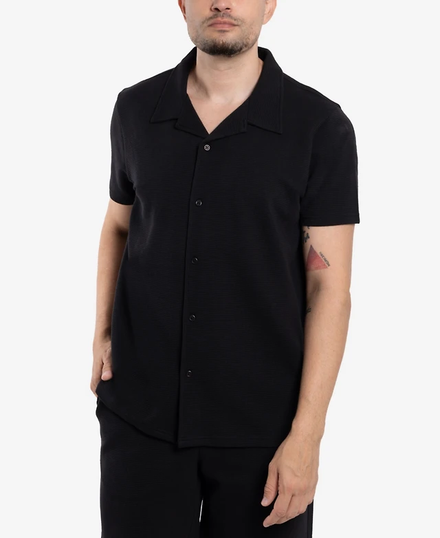 Spring + Mercer Men's Camp Collar Short Sleeve Textured Button-Up Shirt