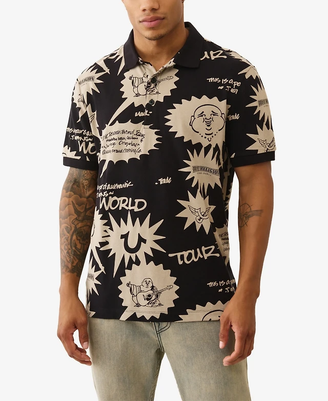 True Religion Men's All-Over Print Short Sleeve Polo Shirt