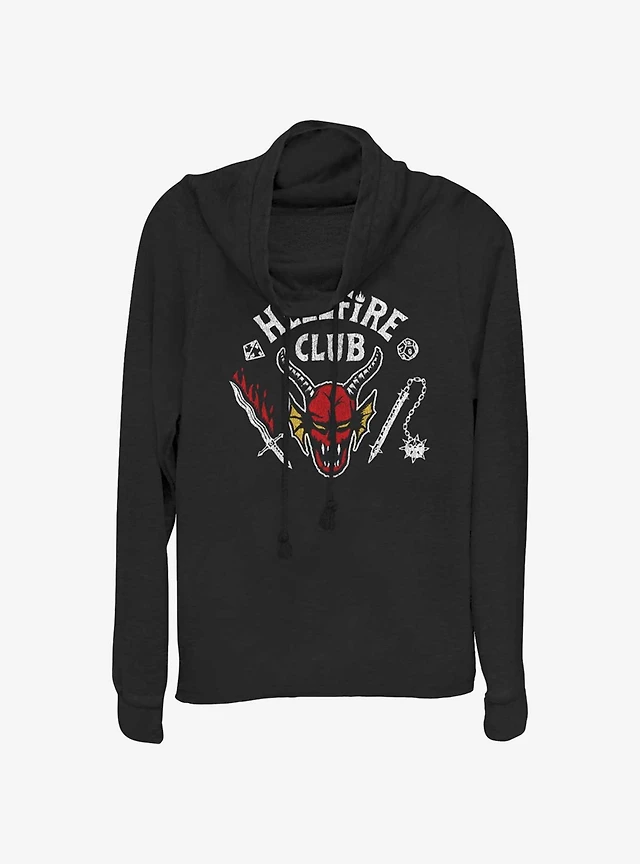 Stranger Things Fire and Dice Cowl Neck Long-Sleeve Top