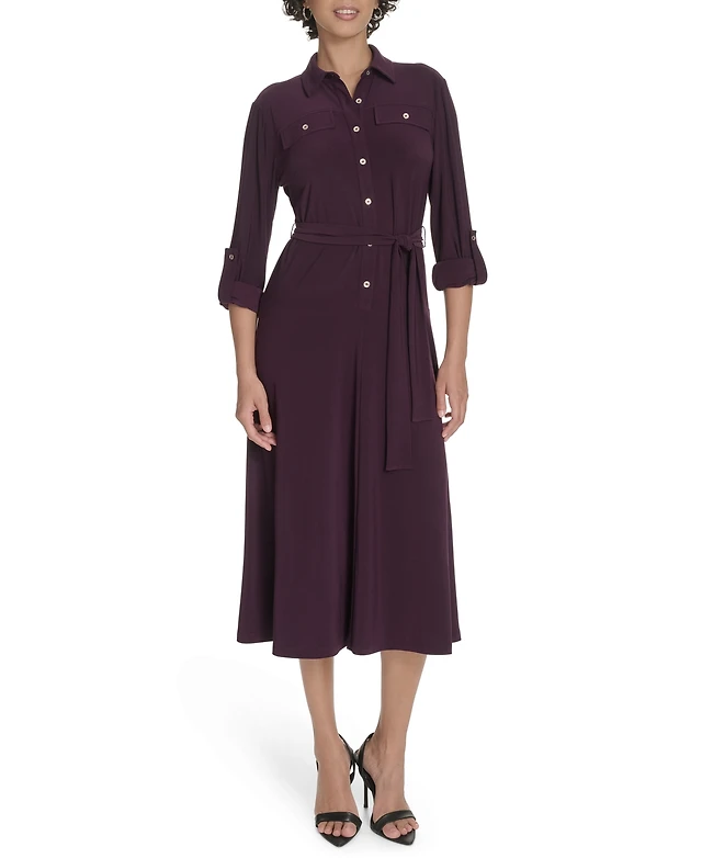 Calvin Klein Women's Belted V-Neck Coat Dress