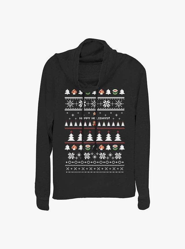 Super Mario Happy Holidays Cowl Neck Long-Sleeve Girls Top