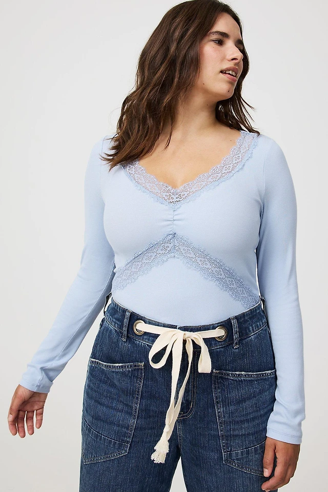 Peplum V-Neck Lace-Trim Top