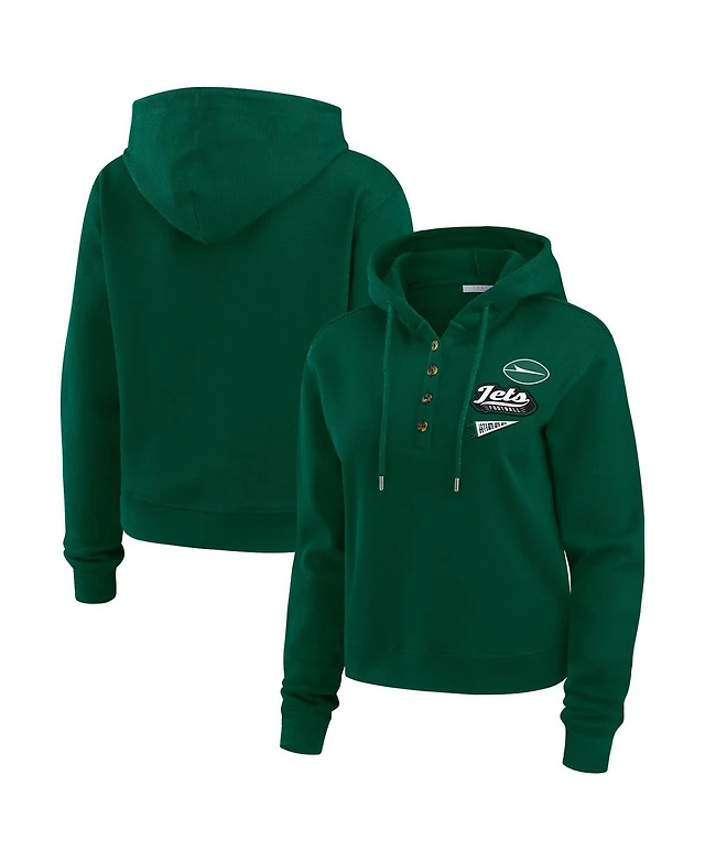 Wear by Erin Andrews Women's Green New York Jets Plus Size Waffle Hoodie Pullover Top
