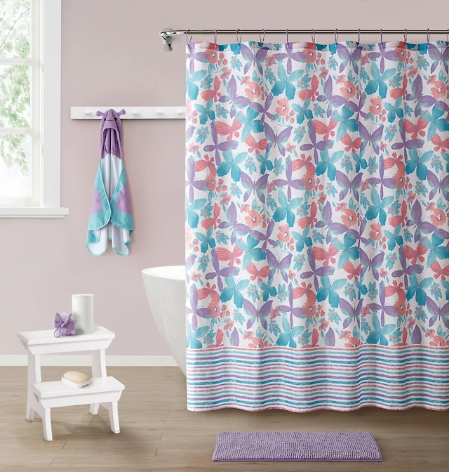 Kate Aurora Kate Aurora Complete 5 Piece Juvi Butterfly Themed Fabric Shower Curtain Bathroom Set
