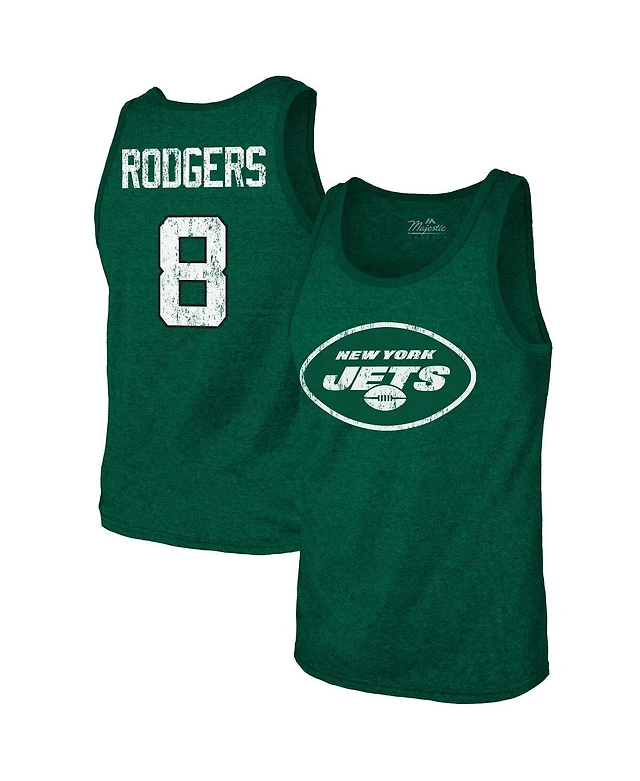 Men's Majestic Threads Aaron Rodgers Green New York Jets Player Name and Number Tri-Blend Tank Top