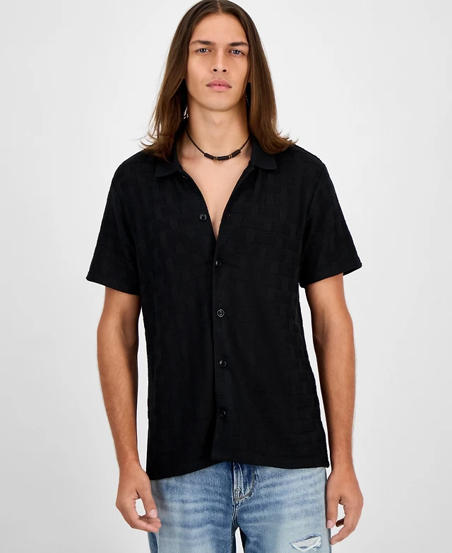Guess Men's Stretch Faux Leather Snap Collar Moto Jacket