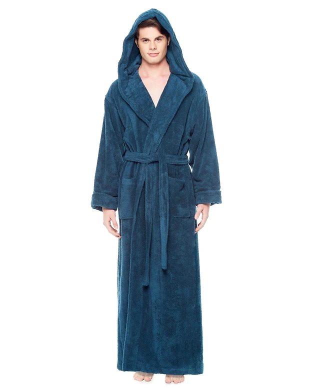 Arus Men's Thick Full Ankle Length Hooded Turkish Cotton Bathrobe
