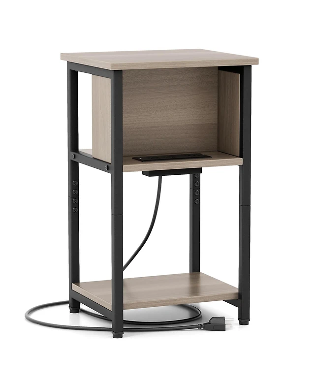 Tribesigns Wood End Table, Small Side Table with 2 Storage Shelves, Rustic Accent Narrow Nightstand for Living Room, Bedroom