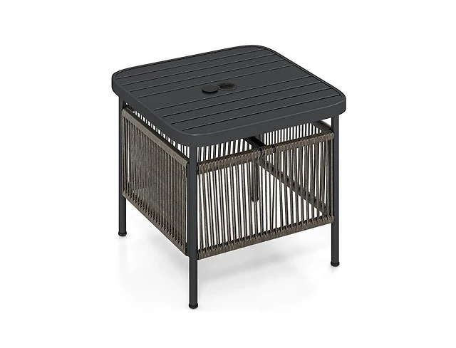 Flynama Outdoor Faux Wicker Side Table Powder Coated Iron Frame Grey Accent Table for Patio Extra Holding Space