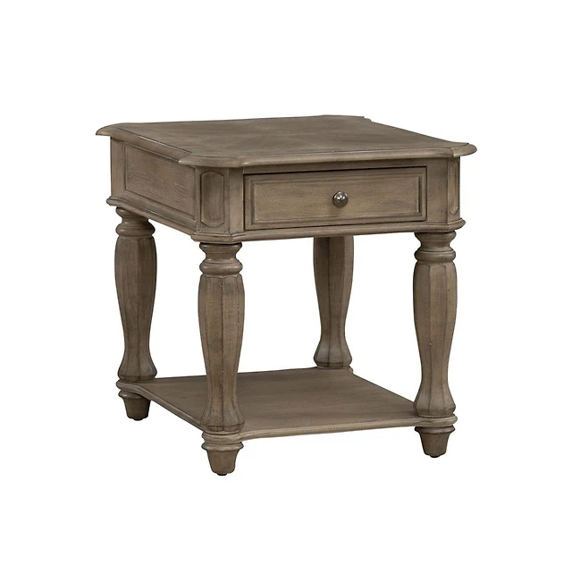 Side Table with Drawer and 2 Open Shelves, Compact End for Small Spaces