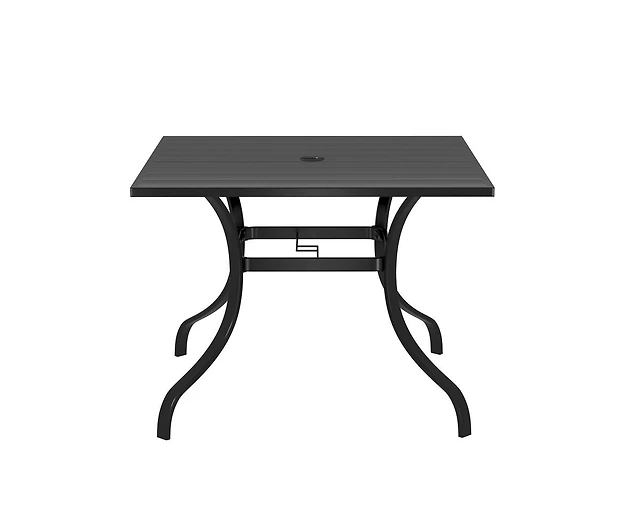 Emma+Oliver Tala Rectangular Tempered Glass Top Patio Table With Umbrella Hole And Black Steel Tube Frame