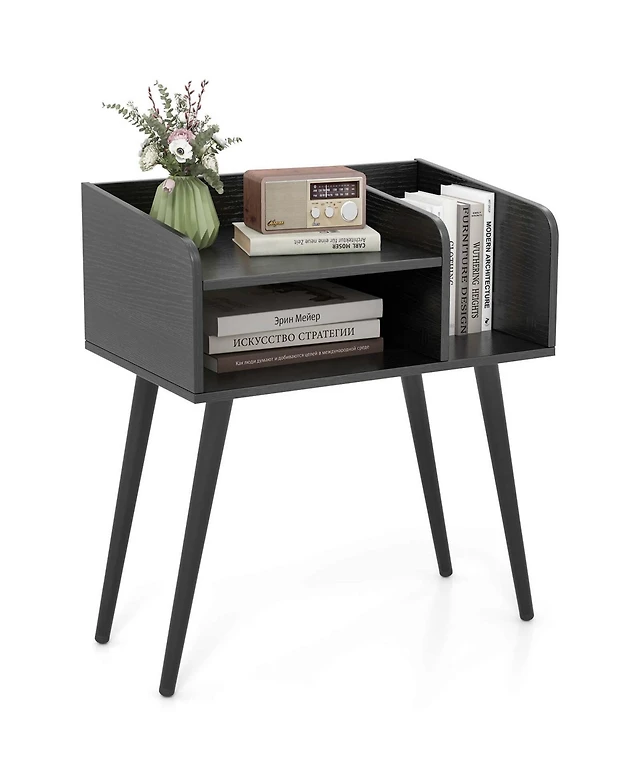 Costway Mid Century Modern End Table with Open Shelves Metal Support Legs for Bedroom