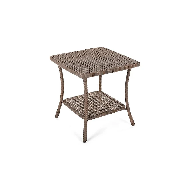 Gymax 2 Pieces Indonesia Teak Wood Folding End Table Square Side Table w/ Slatted Tabletop Yard Natural