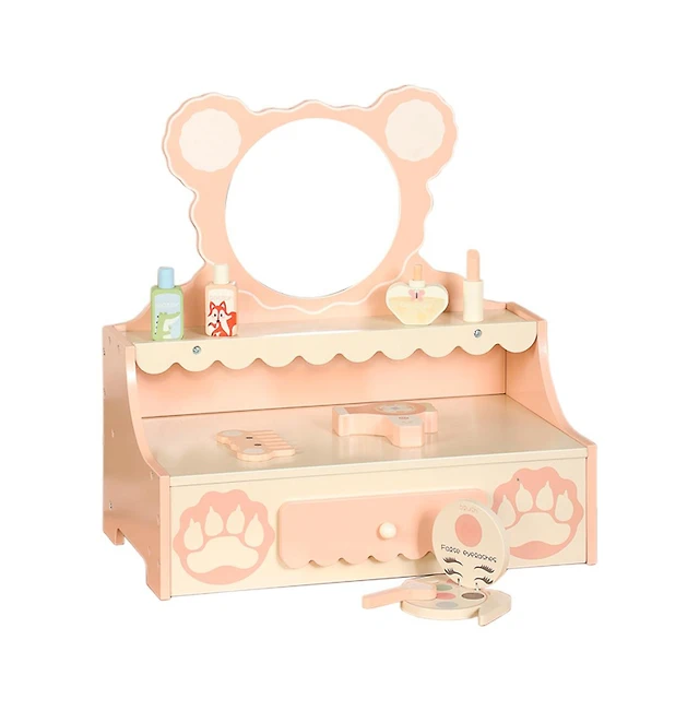 gaomon Kids Wooden Vanity Table and Chair Set with Touch Control Lighted Mirror and Drawers