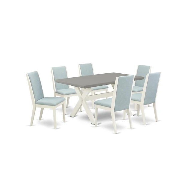 East West Furniture 7Pc Modern Dining Table Set Includes a Dinette Table and 6 Parson Chairs with Baby Blue Color Linen Fabric, Medium Size Table with