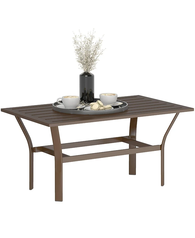 Costway 67'' Patio Rectangle Table Heavy-Duty Acacia Wood Dining Table with Umbrella Hole