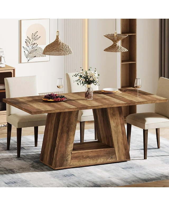Tribesigns 62” Wood Dining Table for 4-6 People, Farmhouse Large Rectangle Kitchen Table