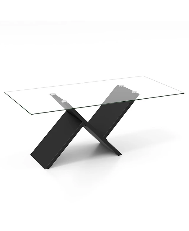 Gouun Glass Table Oval Living Room Table with Cross Base and Acacia Wood Legs