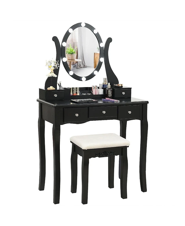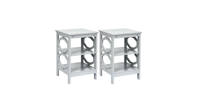 Gymax 2PCS 2-Tier Nightstand End Side Table Coffee Wooden Legs Bedroom Black