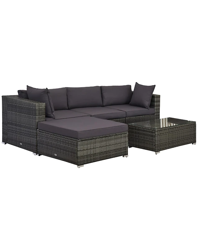 Outsunny 5 Piece Patio Wicker Furniture Set, Outdoor Sectional Sofa Set Rattan Conversation Sets with Tempered Glass Tabletop Coffee Table and Ottoman