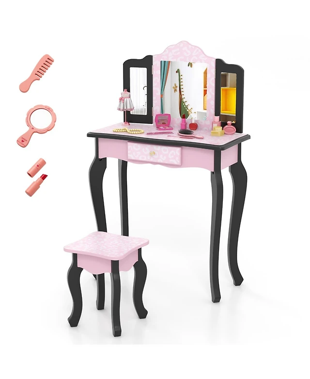 gaomon Vanity Desk with Mirror and Lights, Makeup Vanity with Power Outlet & Cushioned Stool, 3 Lighting Modes Adjustable Brightness, Dressing Table w