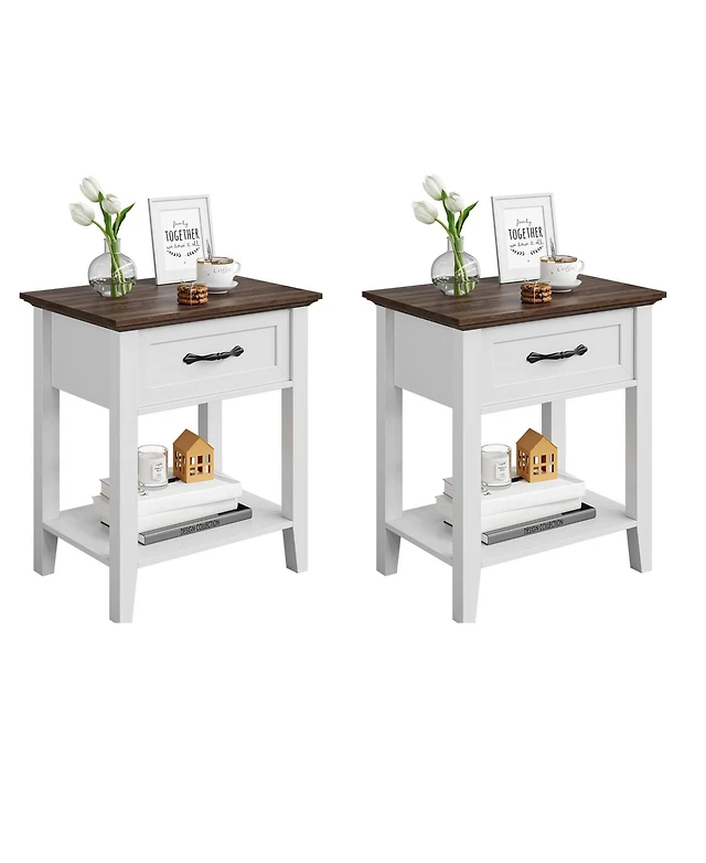 Sugift Midcentury Modern Bedside Table with 2 Drawers