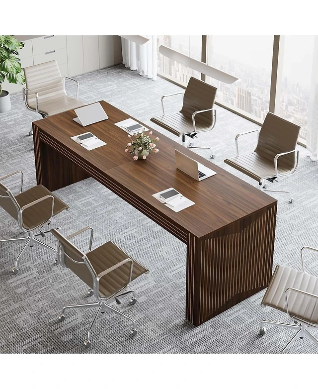 Homsee Retangular Wood Grain Wooden Dining Table with Wooden Frame