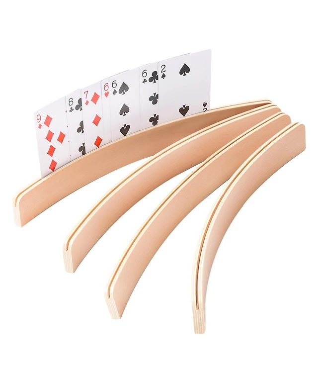 Gse Games & Sports Expert Domino & Playing Card Racks Set of 4, Wooden Domino and Playing Cards Trays Holders Organizer