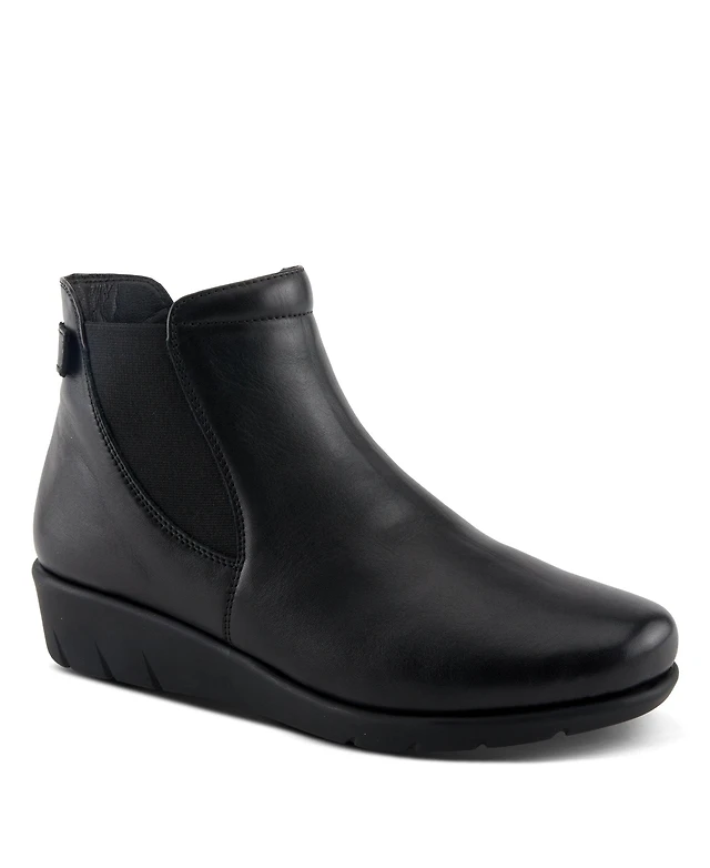 Spring Step Apso Leather Wedge Bootie with Elastic Panel, Inside Zipper, and Removable Insole