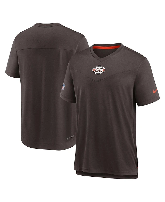 Men's Nike Brown Cleveland Browns Sideline Coaches Vintage-like Chevron Performance V-Neck T-Shirt