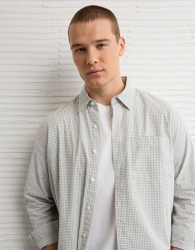 AE Everyday Relaxed Fit Plaid Button-Up Shirt